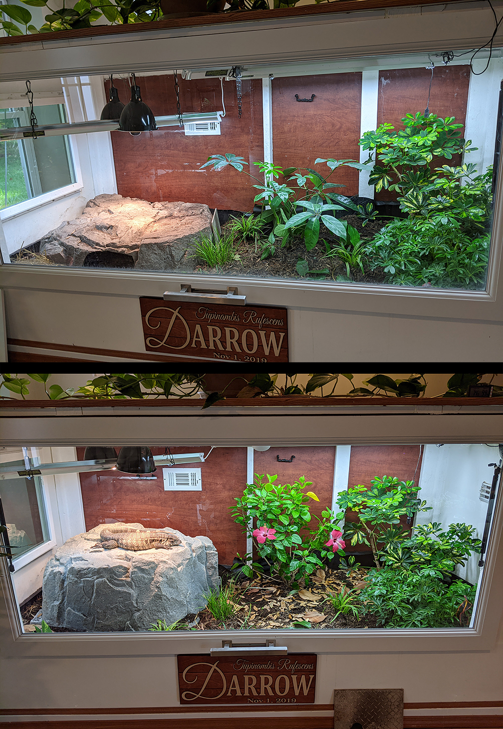 decided to get a taller hide so he can properly look out his window better. Plus side I can raise the lights so they aren't hanging down so far and looking as awkward. He also instantly seemed to appreciate being able to be up higher.. and had a nice Schefflera in there but didn't quite dig the loo
